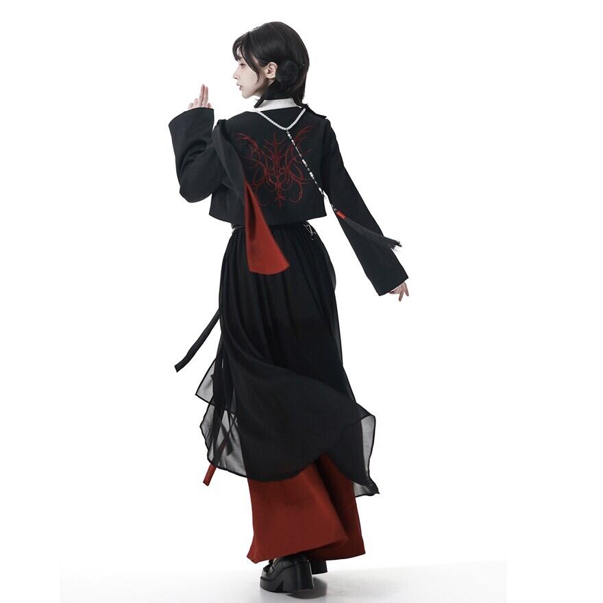 ・撮影やイベント用のコーデ作りに。胸元の赤い刺繍がさりげないアクセントになり、シンプルな中にも印象を残せます。