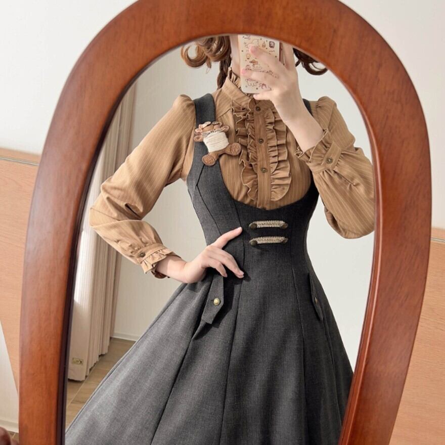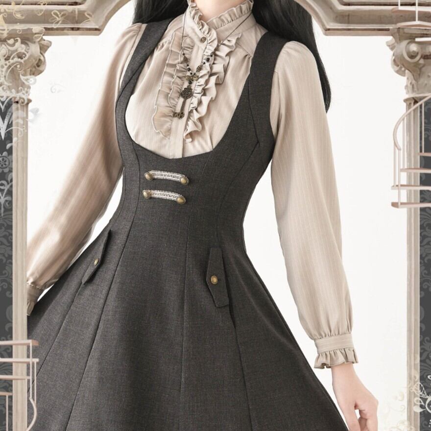 アンティーク家具のある小さな部屋で、静かに本を開くようなクラシカルな空気感。甘さを控えた色合いとフリルの重なりが、日常の中にもロリィタらしい気品をそっと添えてくれます。