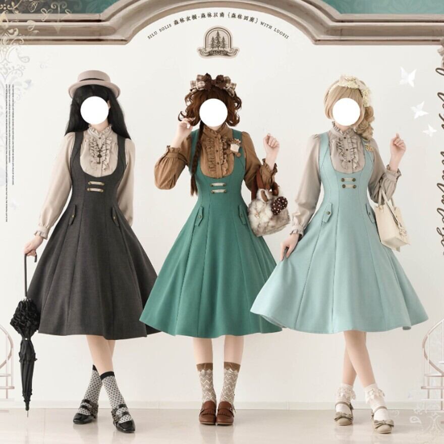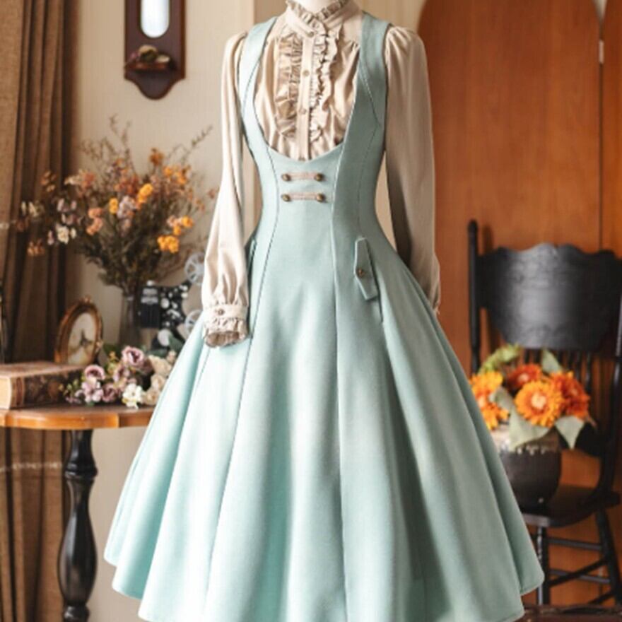 JSKはブラウスを合わせるだけでコーデの形が整いやすいため、クラシカルロリータを始めたい方にも取り入れやすいアイテムです。グリーン・グレー・ミントの落ち着いた色展開なので、甘すぎる雰囲気が苦手な方でも着やすくなっています。
