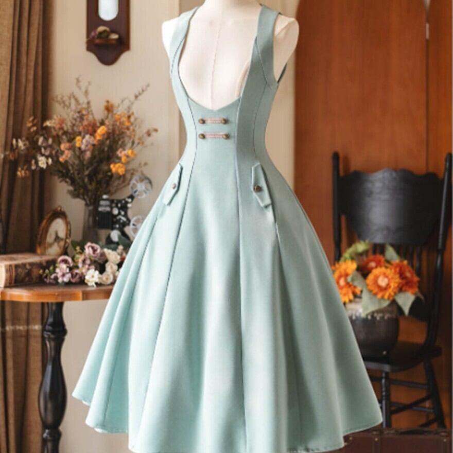 クラシカルロリータのフレアJSK。グリーン・グレー・ミントの落ち着いた色合いで、普段使いしやすいクラロリコーデを楽しみたい方におすすめです。