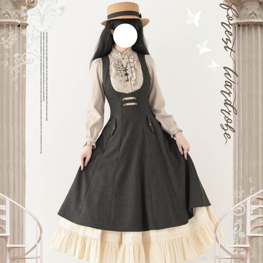 A. ブラウスを合わせるだけでクラシカルロリータらしい雰囲気を作りやすいJSKです。色合いも落ち着いているため、甘すぎないロリィタから始めたい方にも向いています。
