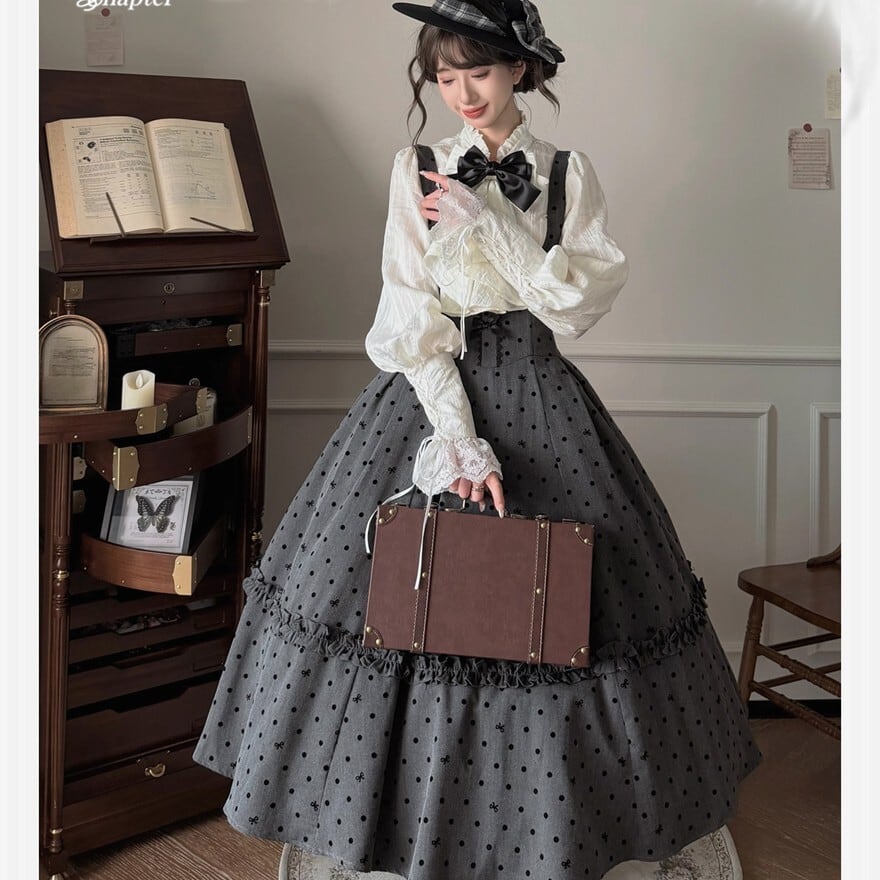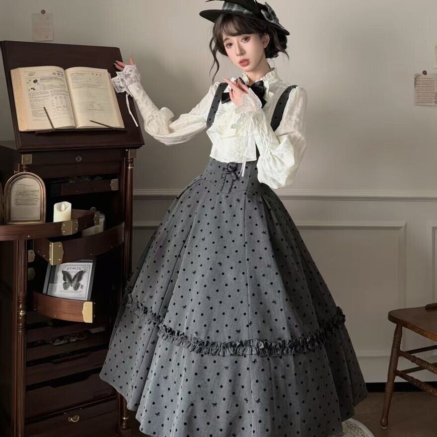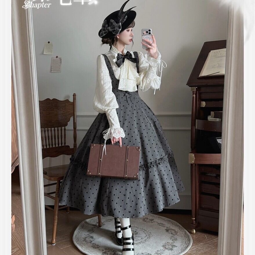 クラシカルロリータ|ドット柄ジャンパースカート&ブラウス2点セット